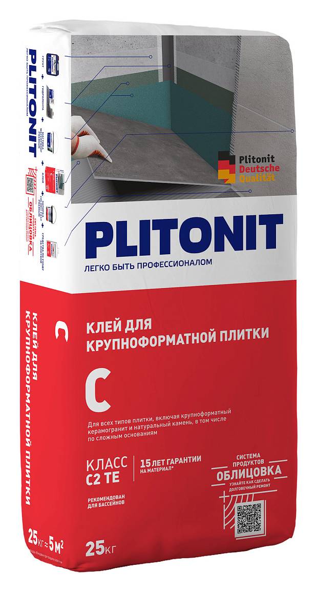 Клей Plitonit С, для крупноформатной плитки, 25 кг